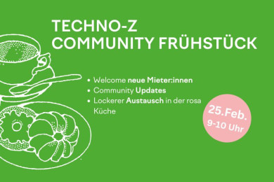 Community Veranstaltung für Techno-Z Mieter:innen – lockeres Meetup mit aktuellen Themen aus und für die Community.